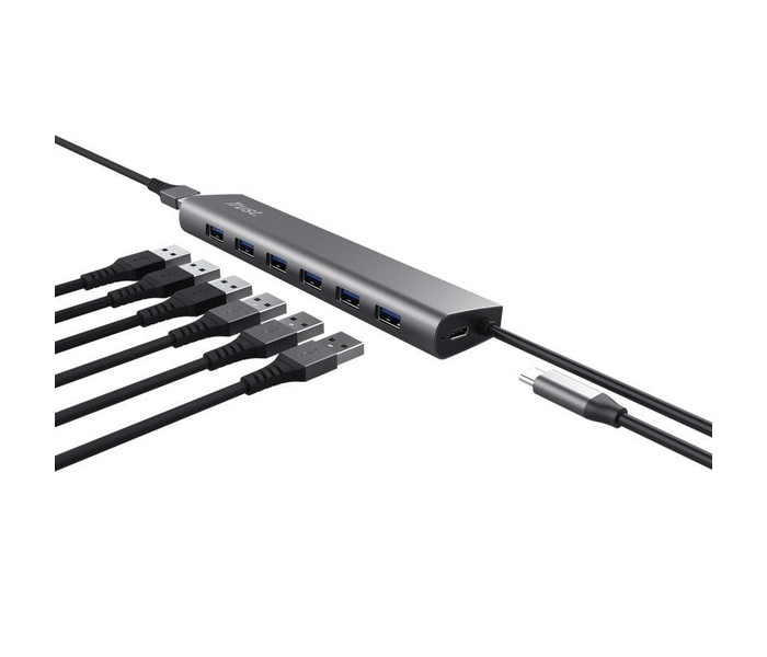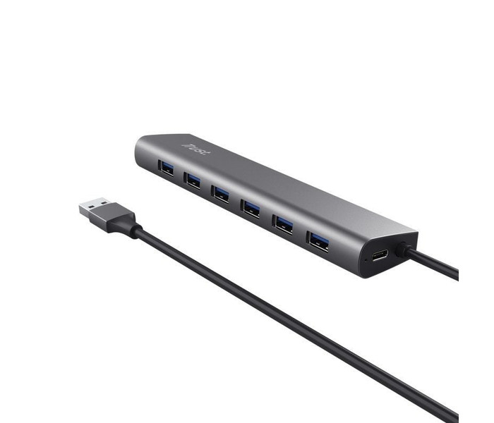 Hub USB 3.2 Gen1 Trust Halyx/ 7xUSB/ 1xUSB-C/ Gris