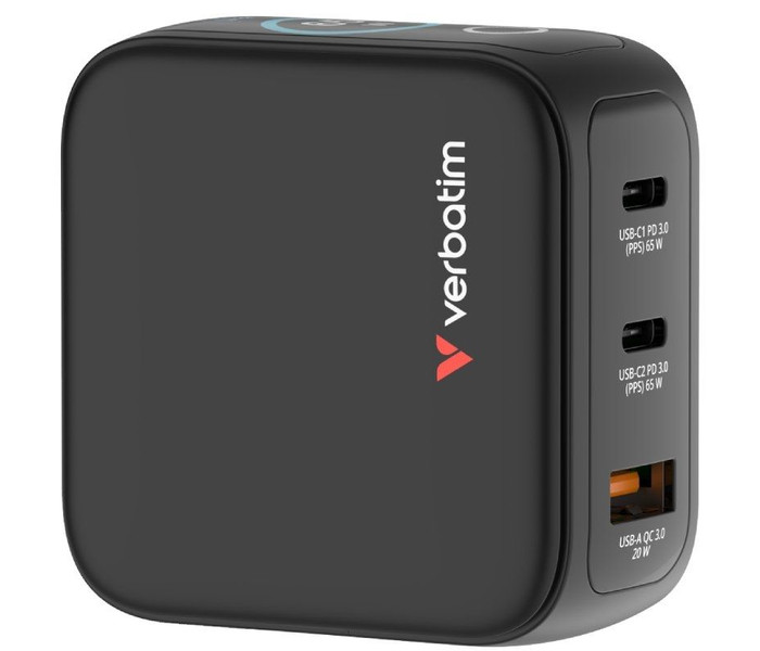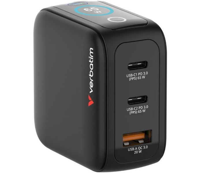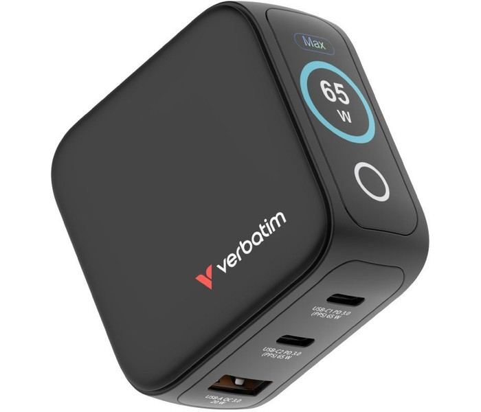 Mini cargador GaN Verbatim de 65 W con pantalla