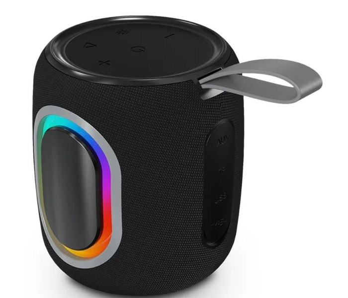 Altavoz Bluetooth muy compacto y portable, con 15W de potencia y dos grandes membranas para una óptima calidad de sonido, toques de luz a los laterales, 24 horas de autonomía, alta resistencia al agua y asa integrada para llevar cómodamente.