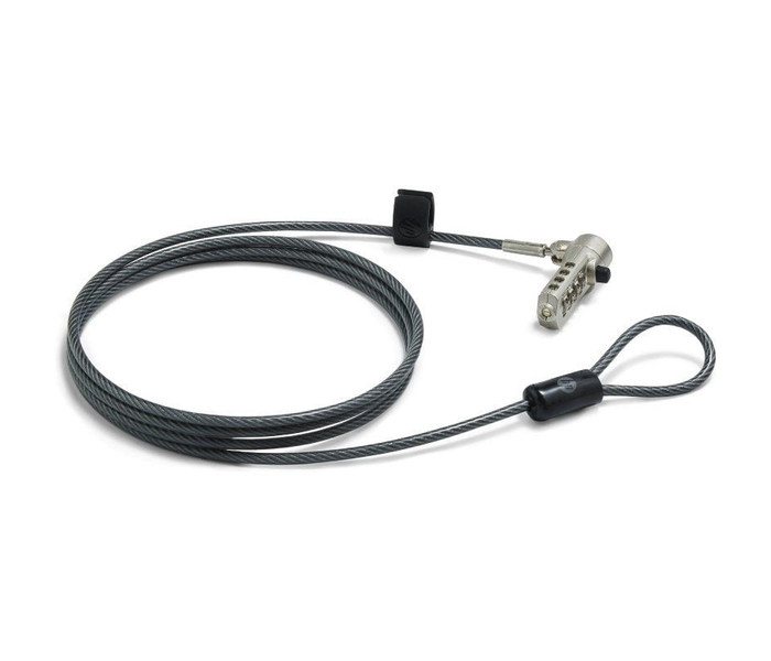Rodea cualquier objeto fijo con el cable de acero galvanizado, recubierto con vinilo de 1,83 m (6 pies), engancha el portátil y bloquéalo con el mecanismo de presión sin llave y tu combinación personalizada de cuatro dígitos.