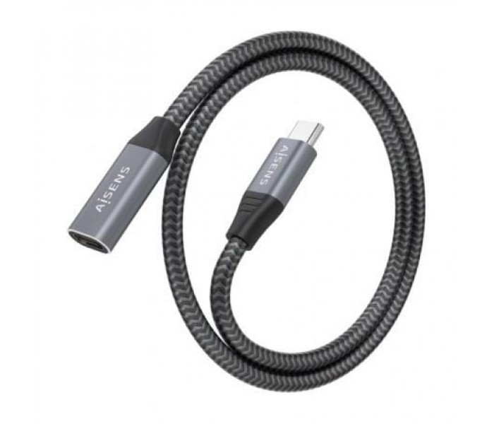 Cable Alargador USB 3.2 Aisens A107-0636/ USB Tipo-C Macho - USB Tipo-C Hembra/ Hasta 100W/ 20Gbps/ 2m/ Gris
