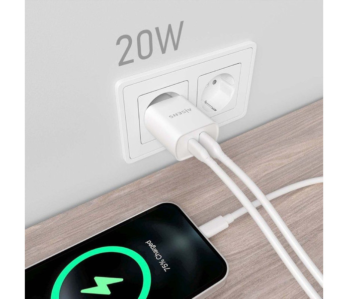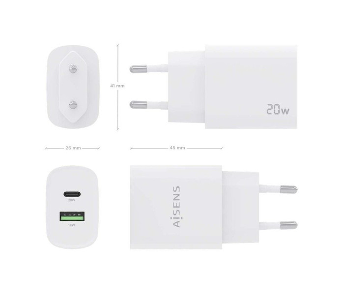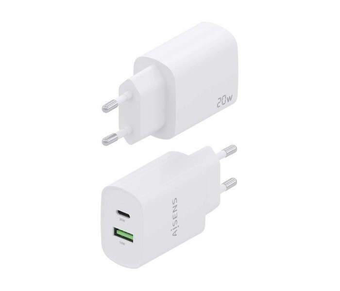 Cargador de Pared Aisens A110-0754/ 1xUSB Tipo-C/ 1xUSB/ 20W