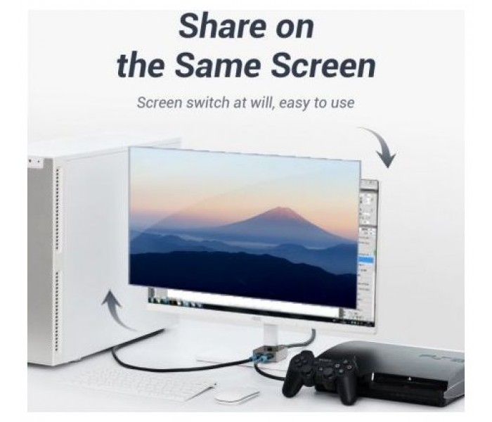 Es compatible con una amplia variedad de dispositivos como ordenadores, portátiles, monitores, consolas PS4, Switch, Xbox, TV Box, televisores y proyectores. Resulta perfecto tanto para entornos de oficina como para ocio y gaming, permitiendo compartir una misma pantalla entre distintos equipos de forma práctica.