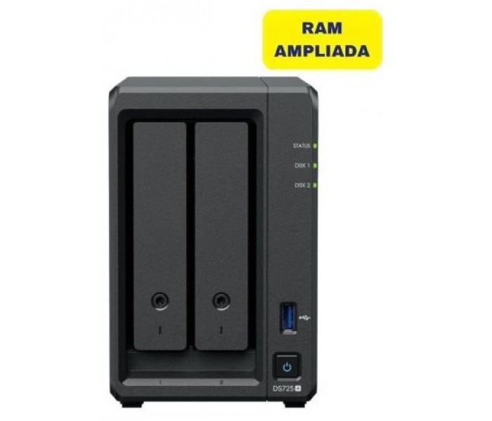 NAS Synology Diskstation DS725+/ 2 Bahías 3.5"- 2.5"/ 32GB DDR4/ Formato Torre