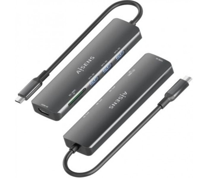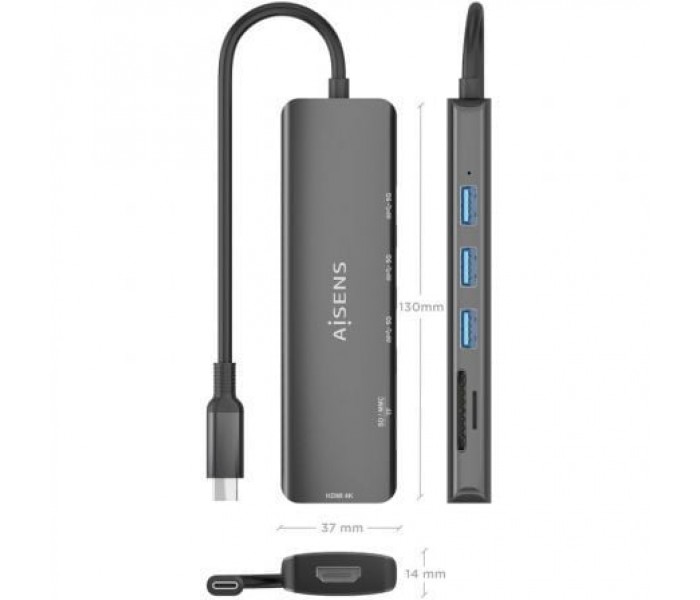 AISENS - USB-C DOCK 6 EN 1, USB-C A 1xHDMI, 3xUSB-A, 1xSD, 1xMICRO SD, GRIS, 15CM