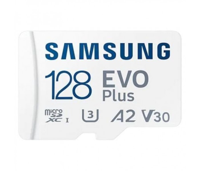 Especificaciones:. . Características generales. . Tipo de producto: Tarjeta de memoria microSDXC. Familia: EVO PLUS. Aplicación: Teléfono móvil, smartphone, tablet. Capacidad: 128 GB, (1 GB = 1 billón de bytes) * La capacidad de almacenamiento real puede ser menor que la capacidad indicada en la etiqueta. Parte del almacenamiento se puede utilizar para archivos del sistema y otros fines de control de almacenamiento.. Interfaz: UHS-I, compatible con interfaz UHS. Dimensiones: 15x11x1 mm. Peso: Aprox. 0.25g. Accesorios: Adaptador SD. . Rendimiento. . Velocidad: Lectura: hasta 160 MB/s Escritura: menor que la velocidad de lectura *La velocidad de lectura/escritura requiere dispositivos compatibles capaces de alcanzar tales velocidades y puede variar entre diferentes dispositivos anfitriones y condiciones de prueba. *Para productos incompatibles con la interfaz UHS-I, las velocidades pueden variar según las diferentes condiciones de la interfaz.. Velocidad: U3, V30, A2. . Entorno. . Voltaje: 2.7~3.6V. Temperatura de almacenamiento: -40 a 85. Temperatura: -25 a 85. . Certificación. . EMC: CE(UKCA)/FCC/VCCI/RCM