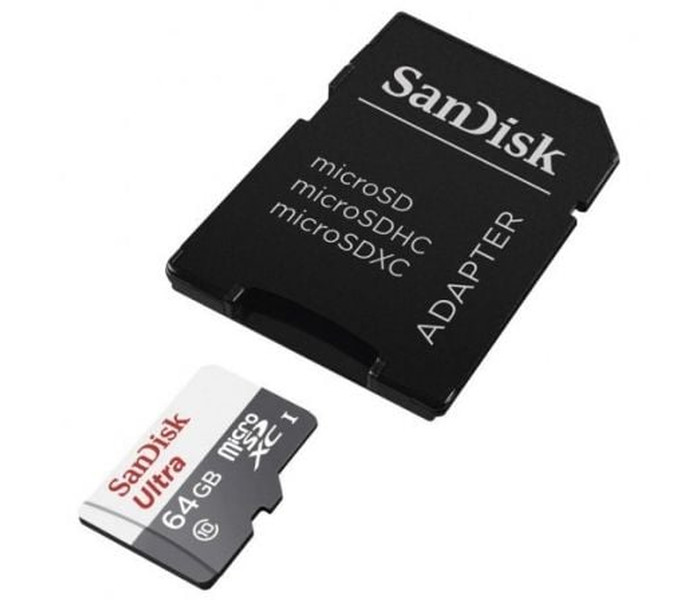 Tarjeta de Memoria SanDisk Ultra 64GB microSD XC con Adaptador/ Clase 10/ 100MB/s