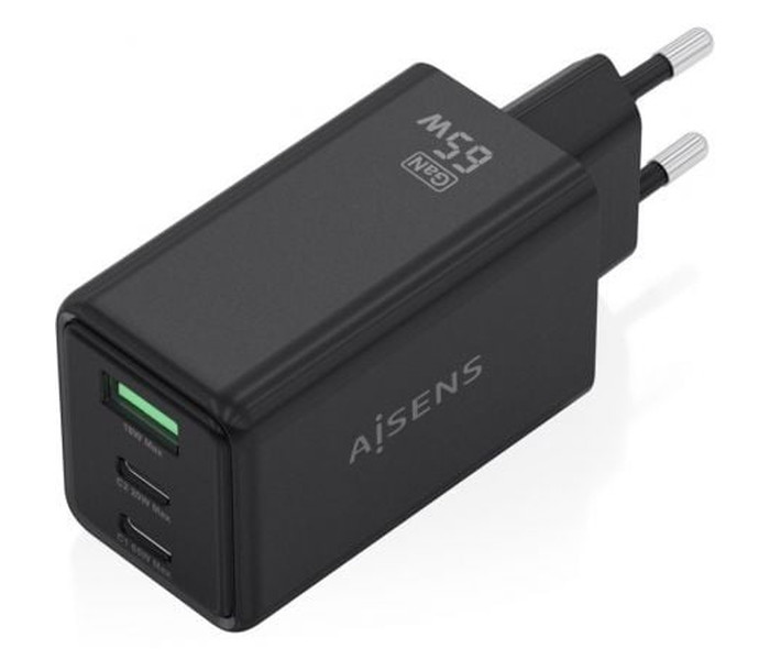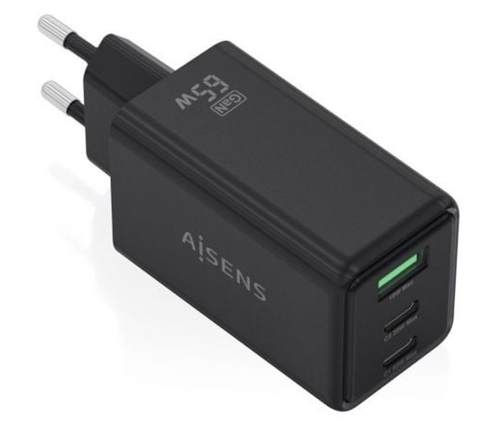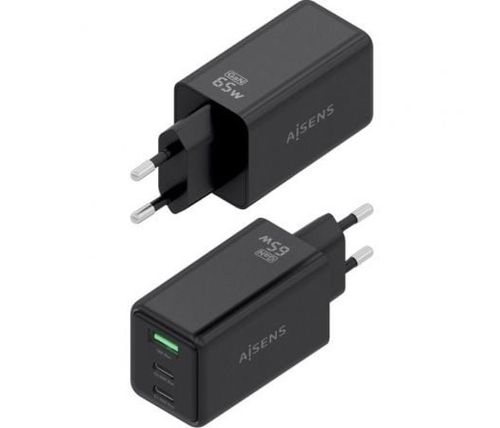 Cargador de Pared GaN Aisens ASCH-65W3P073-BK/ 2xUSB Tipo-C/ 1xUSB/ 65W/ Negro