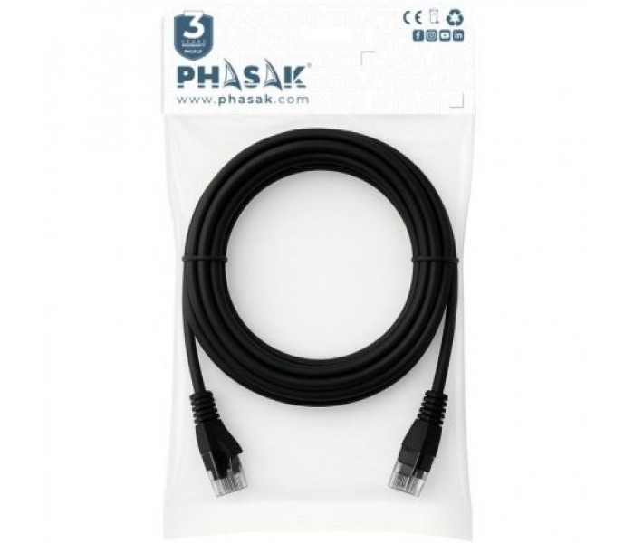 Cable de Red RJ45 UTP Phasak PHK 1752 Cat.6/ 25cm/ Negro