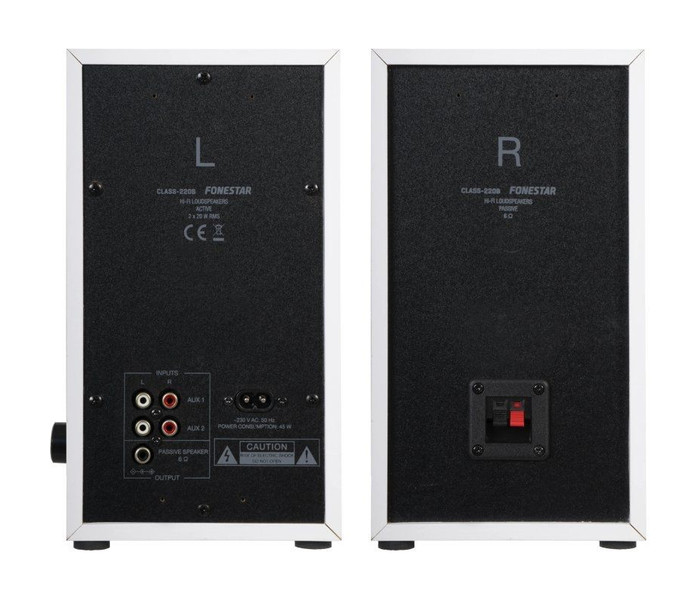 - Altavoz activo con amplificador y salida para altavoz pasivo.