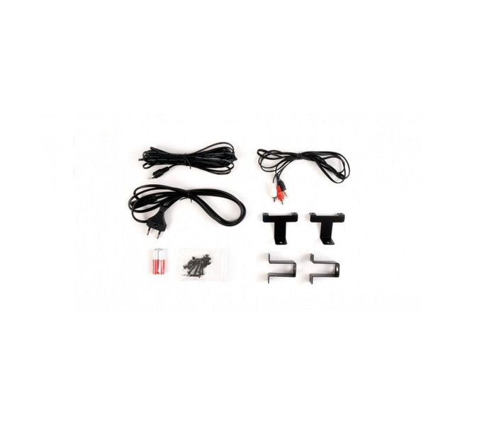 - ACCESORIOS: Soportes de fijación, Cable altavoz 10 m, Cable 2 x RCA a jack 3"5 mm, Cable de alimentación