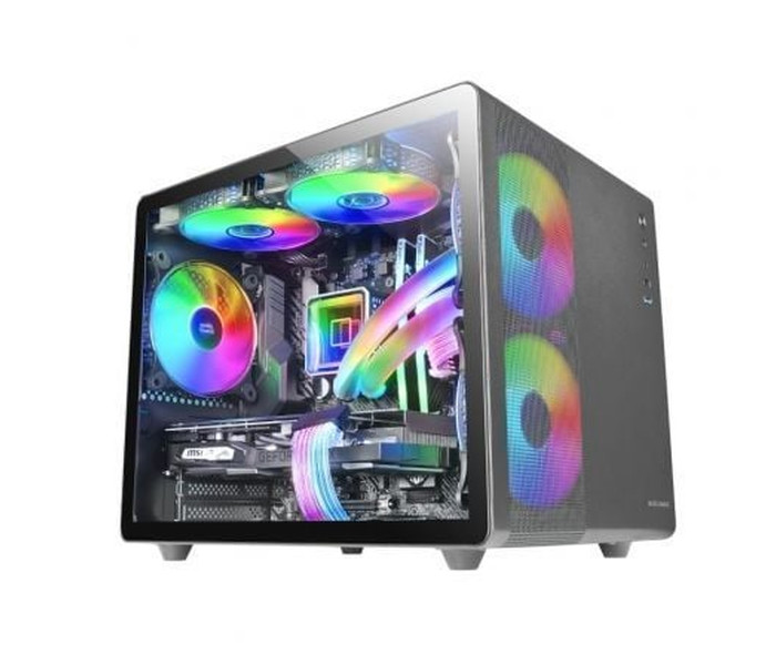 Experimenta la fusión de innovación y diseño compacto con esta caja gaming totalmente metálica, diseñada específicamente para configuraciones avanzadas en formatos Micro-ATX y Mini-ITX. Esta carcasa única presenta un diseño de cámara de doble cara, triple refrigeración FRGB integrada, una ventana completa de cristal templado y un panel lateral de malla completa para una estética elegante y moderna. También admite refrigeración líquida interna de hasta 240mm, colocada de forma exclusiva en la segunda cámara para una disipación óptima del calor, lo que garantiza que sus componentes se mantengan frescos incluso durante las sesiones de juego más intensas. Esta solución compacta pero potente está diseñada para satisfacer las exigencias de los actuales sistemas de juego de alto rendimiento.. . Características principales:. . DISEñO INNOVADOR GAMING. La caja MC-400 presenta un diseño vanguardista e innovador que garantiza un flujo de aire óptimo y una ventilación excepcional. Su exclusiva estructura de cámara de doble cara, combinada con paneles de malla frontales, superiores y laterales, garantiza una ventilación superior. La ventana lateral de cristal templado añade un toque de elegancia, ofreciendo una vista espectacular de su equipo a la vez que garantiza un rendimiento térmico óptimo.. . CAPACIDAD DE REFRIGERACIóN EXCEPCIONAL. Los paneles de malla estratégicamente situados en la parte frontal, superior y lateral garantizan un flujo de aire constante y sin restricciones, optimizando las temperaturas del hardware. Experimenta el mejor rendimiento durante las sesiones gaming más intensas con la caja para PC MC-400.. . ESTRUCTURA DE DOBLE CáMARA LATERAL. Desata todo el potencial de una refrigeración óptima con la caja MC-400. Equipada con soporte para hasta nueve ventiladores de 120mm y refrigeraciones líquidas traseras e internas de hasta 240mm, este chasis te ofrece una capacidad de refrigeración insuperable.. . CAPACIDAD INTERNA AMPLIADA. La caja MC-400 ofrece un amplio espacio interno para la instalación de componentes de alto rendimiento. Admite placas base MicroATX y Mini-ITX, hasta 3 unidades SSD de 2,5"" y 2 discos duros de 3,5"". La eficaz gestión interna del cableado mantiene la configuración ordenada y organizada. Además, puede albergar VGA de hasta 340mm de longitud y disipadores de CPU de hasta 160mm de altura.. . ELEVA LA EXPERIENCIA GAMING. El sistema de iluminación Fixed RGB en los 3 ventiladores incluidos proporciona un flujo de color constante, mejorando la estética de tu equipo. El diseño de malla frontal eleva aún más el aspecto, combinando refrigeración e iluminación a la perfección. Experimenta la unión de rendimiento y estética con la caja MC-400.. . Especificaciones:. . Dimensiones: 356x276x304mm. Peso: 3.8Kg. Tamaño: Minitorre. Ventana: Ventana lateral completa de cristal templado. Extras: Sistema de gestión de cableado interno. Compatibilidad con placas base: MicroATX / Mini-ITX. Puertos: USB3.0 x1 / USB2.0 x1 / HD Audio + Mic (mezclado). Tipo de fuente: ATX. Bahías internas: 2x 3.5"" HDD + 3x 2.5"" SSD. Longitud VGA máx.: 318mm - 340mm (sin ventilador frontal). Anchura VGA máx.: 150mm. Altura disipador máx.: 160mm. Soporte refrigeración líquida: 120mm, trasero / 240mm, 120mm interior. Capacidad de ventiladores: Hasta 9x 120mm. Ventiladores incluidos: 2x 120mm FRGB frontal + 1x 120mm FRGB trasero. Medidas internas: Ancho-28 Alto-29 (suelo a techo) Largo 34,8cm. Conectores de alimentación: MOLEX (ventiladores)