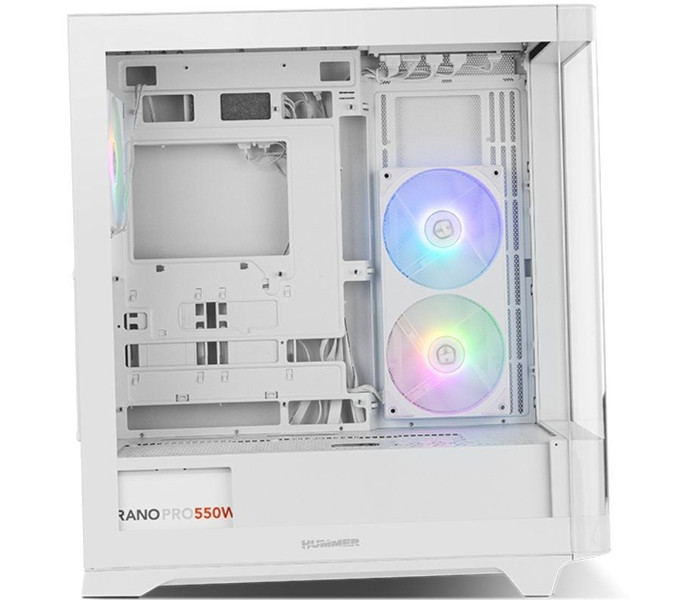 Hummer ETHER está disponible en tres colores: blanco, negro y una combinación de ambos. Su singular diseño, hace de esta caja Nox una delicia para aquellos setup más atrevidos, que valoran la estética sin renunciar al rendimiento. Su cristal templado curvo te ofrece un nuevo nivel de inmersión, al crear una ventana lateral panorámica que deja al descubierto su interior al completo.