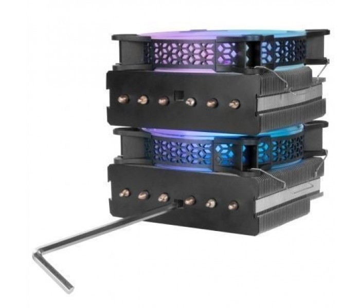 El disipador por aire más potente, con doble torre de disipación y dos ventiladores ARGB silenciosos. Hasta 300W de disipación para batir a gran número de refrigeraciones líquidas y con todas las ventajas de la refrigeración por aire.