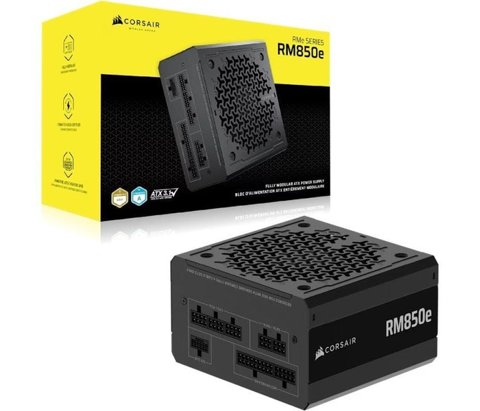 Fuente de alimentación ATX totalmente modular y silenciosa RMe Series RM850e (EU). Las fuentes de alimentación prácticamente silenciosas y completamente modulares CORSAIR RMe Series incluyen un cable de alimentación específico para la GPU de 12 V-2x6, certificación ATX 3.1, conformidad con PCIe 5.1 y calificación de eficiencia Cybenetics™ Gold para un diseño silencioso y fiable. Además, el tamaño compacto de las PSU RMe simplifica la gestión de los cables.. Incluye:. Diseño totalmente modular para un trazado del cableado más depurado. Cable nativo de 12 V-2x6 con capacidad de 600 W para GPU de alta gama. Certificación de eficiencia Cybenetics Gold. Cables en relieve ultraflexibles con organizadores de perfil bajo. Tamaño compacto para una mejor gestión de los cables. Certificación Intel ATX 3.1, compatible con PCIe 5.1. Caracteristicas:. Cybenetics Efficiency. Gold. Cybenetics Noise. A. ATX Connector. 1. ATX12V Version. 3.1. Cable Type. Type 4. Continuous Power W. 850 Watts. EPS Connector. 2. SATA Connector. 6. PATA Connector. 2. Modern Standby. Yes. Dimensions. 140x150x86. Modular. Fully. PCIe Connector. 3. Zero RPM Mode. Yes. Weight. 2.93