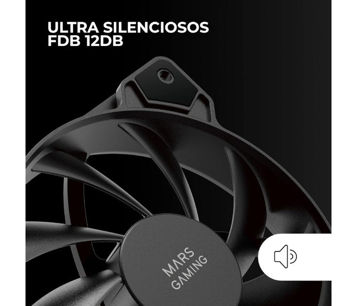 2x Ventiladores profesionales de 120mm ultra silenciosos FDB con diseño de 9 aspas y estructura optimizada. Gomas antivibraciones y alimentación dual mediante conexión directa a placa base o fuente de alimentación. Características principales:. VENTILACIóN SUPERIOR, SILENCIO ABSOLUTO. Excelente rendimiento de ventilación con el mínimo ruido gracias a su diseño único aerodinámico de las aspas, unos rodamientos de fluido dinámico FDB de larga duración y baja fricción y unas juntas de goma anti-vibraciones. Avanzada tecnología en ventiladores a tu alcance.. . KIT DE 2 UNIDADES. Maximiza la refrigeración al mejor precio con los dos ventiladores incluidos en el KIT.. . CONECTIVIDAD 3PIN+4PIN. Conéctalos tanto a la fuente de alimentación como a la placa base. Sin limitaciones.. . Especificaciones:. . Dimensiones: 120x120x25mm. Peso: 110g. Tamaño: 120mm. Nº de aspas: 9. Presión del aire: 1.1mm- H2O. Rodamientos: Hidráulicos. Velocidad: 1200 ± 10% RPM. Flujo de aire: 38CFM. Nivel sonoro: 12dB. Potencia máx.: 1.44W. Conexión: 4 pines Molex / 3 pines. Voltaje: DC12V. Corriente: 0.12A