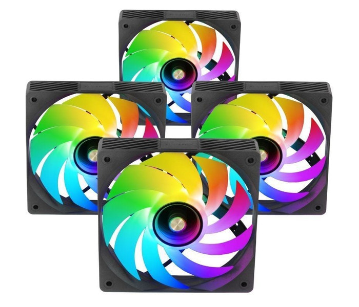 . . Dimensiones. 120x120x25mm. Peso. 162g. Tamaño. 120mm. Nº de aspas. 9. Iluminación. RGB Addressable. Color. Blanco o Negro. PWM. No. Presión del aire. 2.03mm- H2O. Rodamientos. Hidráulicos. Velocidad. 700 o 1200 ± 10% RPM. Flujo de aire. 39 CFM. Nivel sonoro. 14dB(A). Duración. 60.000 horas. Conexión. Ventilador: PH2.0; HUB: 10x PH2.0 / + 5V Adressable RGB 3 pin macho-hembra / SATA. Voltaje. DC12V. Corriente. 0.4A