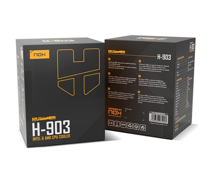 Nox Hummer H-903 es un sobrio disipador de CPU con una estética elegante y minimalista, construido con materiales premium. Con un diseño en negro, este ventilador de 92 mm incorpora una alta capacidad de disipación del calor, manteniendo siempre la temperatura idónea del PC.