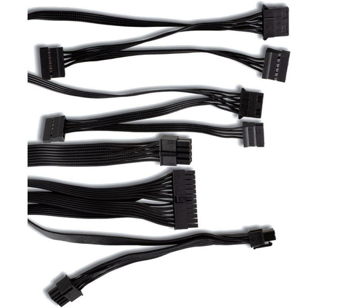 - 1x ATX MB 20+4 pines, 1x EPS +12V 4+4 pines, 2x PCIE 6+2 pines, 4x SATA, 2x Molex 4 pines
