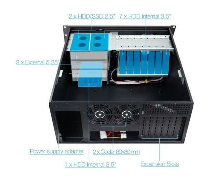Muy buena refrigeración gracias a sus 2 ventiladores de 80 X 80mm y uno 120 × 120 mm frontal.