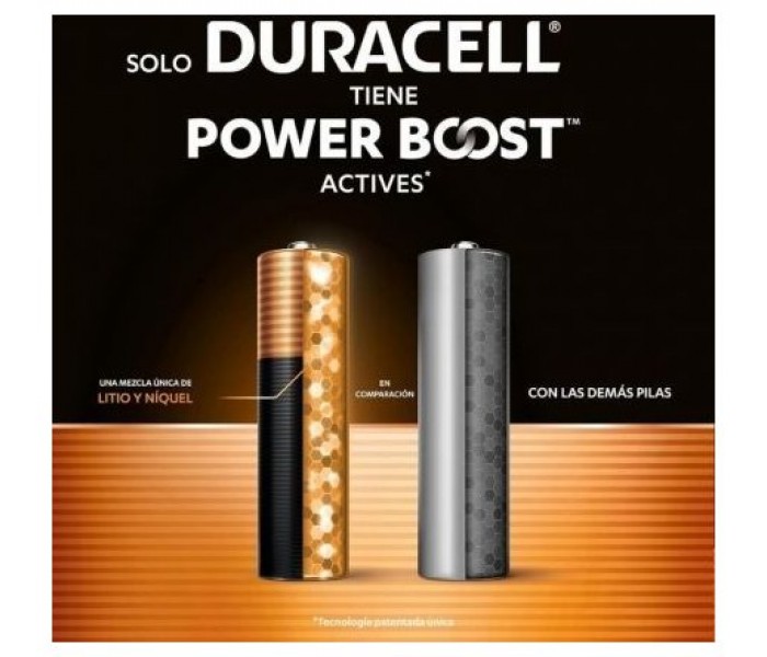 Las pilas alcalinas AA Duracell Plus contienen los activos patentados POWER BOOST, una mezcla única de litio y níquel, que ofrece un rendimiento duradero para tus dispositivos