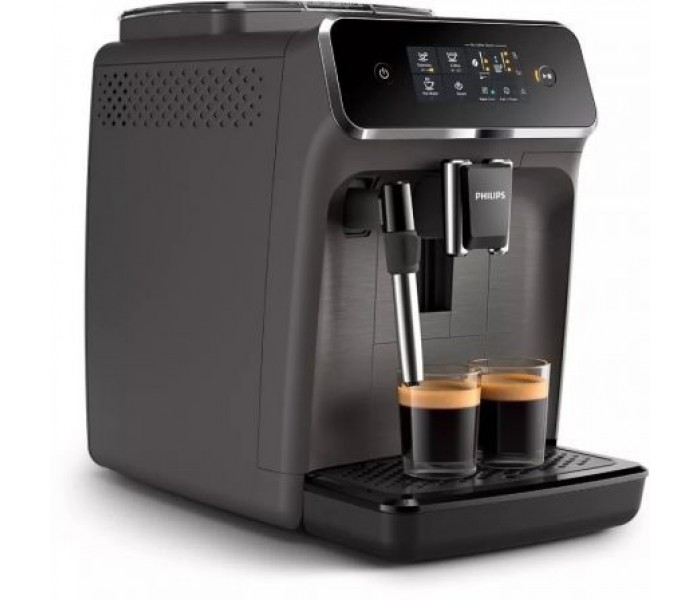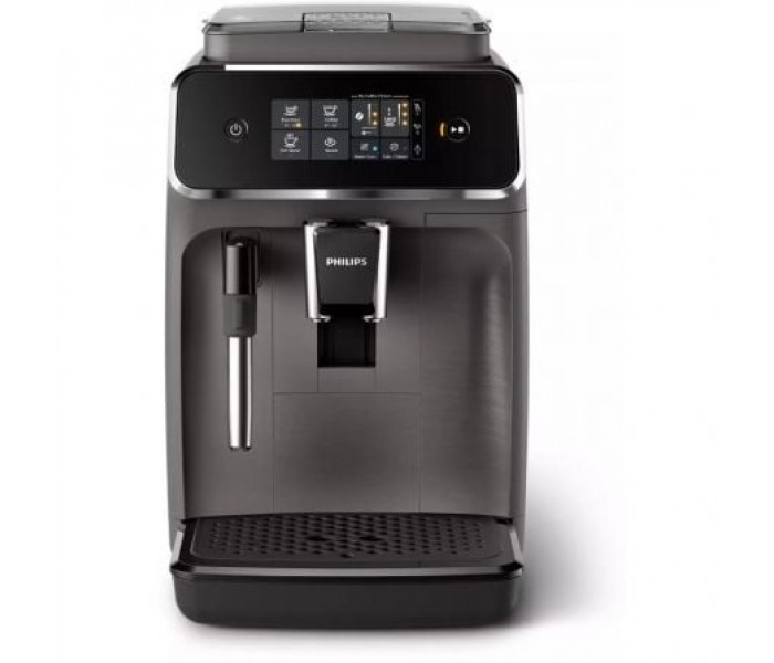 Philips 2200 series Cafeteras espresso completamente automáticas con 2 bebidas. Tipo de producto: Máquina espresso, Máquina de café: Totalmente automática, Capacidad de reservorio de agua: ,8 L, Café tipo de entrada: Granos de café, Depósito para café preparado: Taza, Número de surtidores: 2, Molinillo integrado. Potencia: 500 W. Color del producto: Antracita