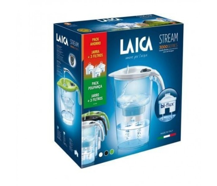 Pack Jarra Filtrante Laica Stream Line/ 2.3L/ Blanca/ Jarra + 3 Filtros BI-FLUX