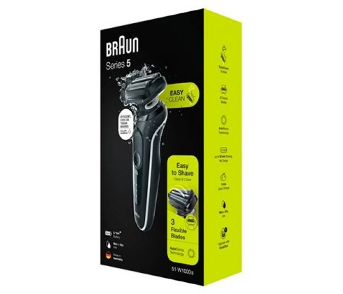 con la afeitadora en seco y mojado de braun serie 5 51 - w1000s conseguirás el afeitado apurado más fácil: las 3 láminas flexibles de esta afeitadora eléctrica se adaptan con fluidez a los contornos del