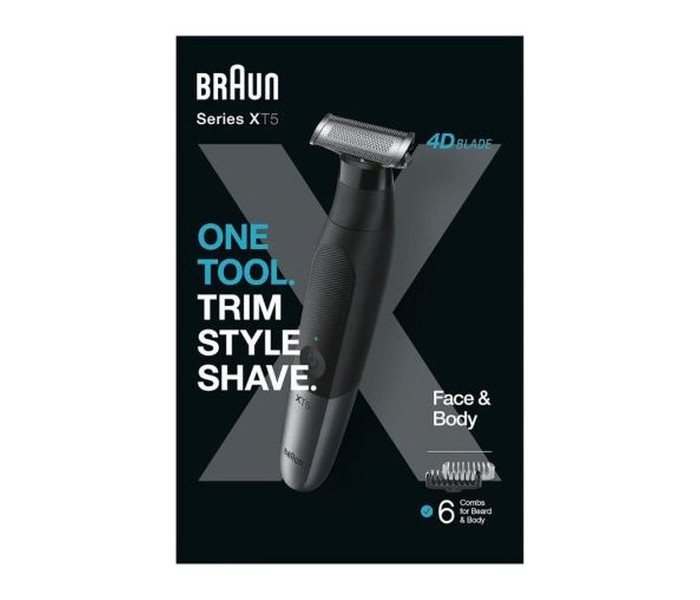 Afeitate en cualquier dirección con la Braun Series X.Contenido de la caja:1 recortadora y afeitadora Series X1 lámina 4D Flex4 peines faciales (1 mm, 2 mm, 3 mm y 5 mm)1 peine corporal (3 mm)1 peine para zonas sensibles1 capuchón protector1 funda