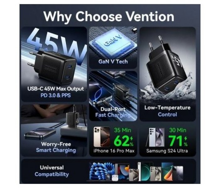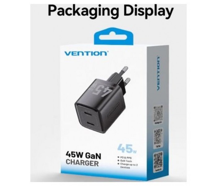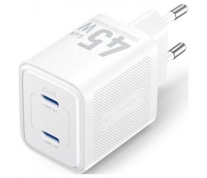 Cargador de Pared GaN Vention FEFW0-EU/ 2xUSB Tipo-C/ 45W