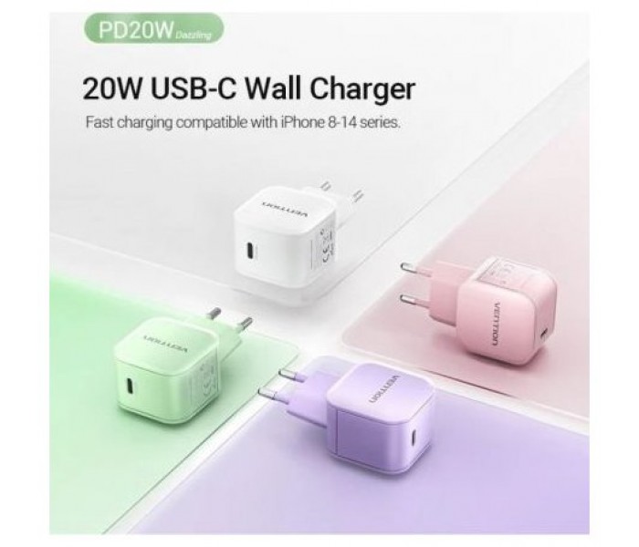 Cargador de Pared GaN Vention FEJP0-EU/ 1xUSB Tipo-C/ 20W