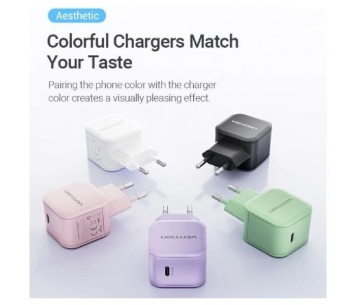 Cargador de Pared GaN Vention FEJV0-EU/ 1xUSB Tipo-C/ 20W