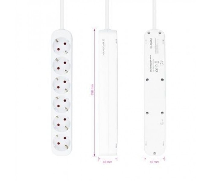 Regleta Nanocable 10.37.0006-NS/ 6 Tomas de Corriente/ Cable 1.4m/ Blanca