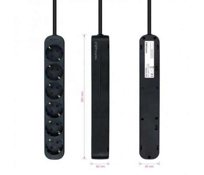 Regleta Nanocable 10.37.0006-NS-BK/ 6 Tomas de Corriente/ Cable 1.4m/ Negra
