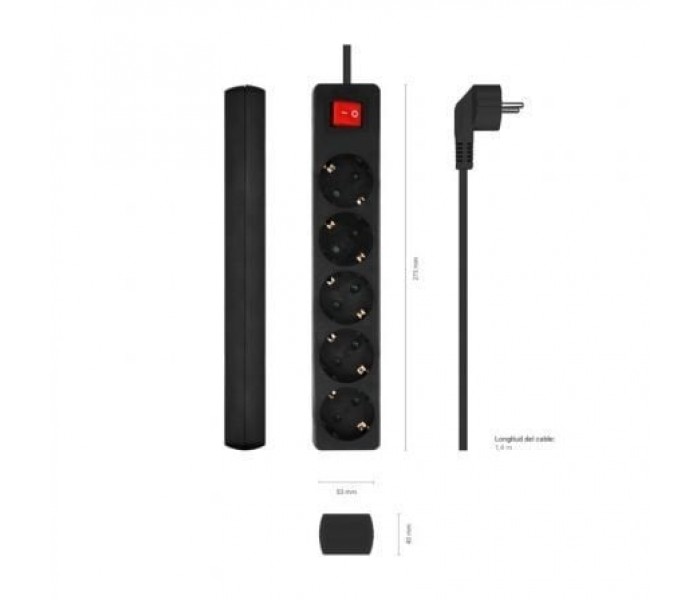 Regleta con Interruptor Aisens A154-0652/ 5 Tomas de Corriente/ Cable 1.4m/ Negro