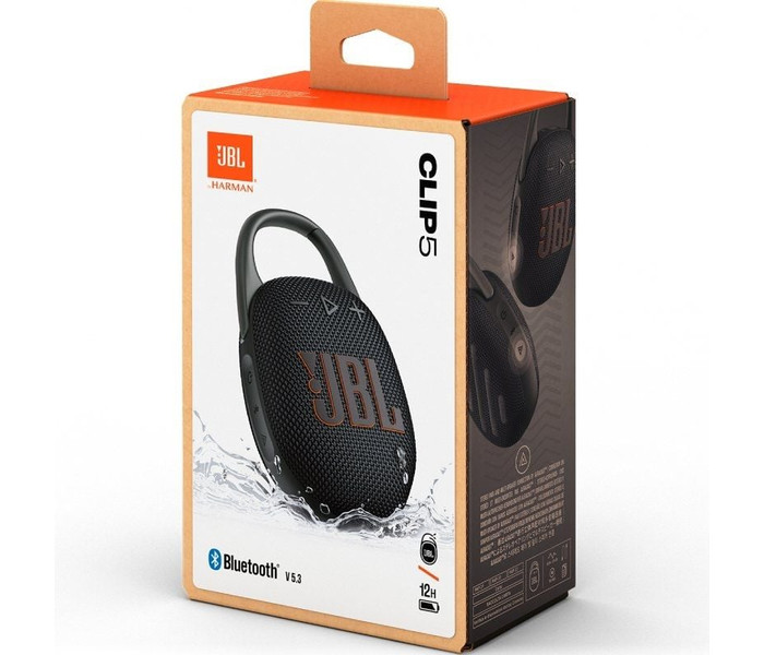 - Contenido de la caja: 1 JBL Clip 5, 1 cable USB-C, 1 guía de inicio rápido, 1 tarjeta de garantía/ficha de seguridad