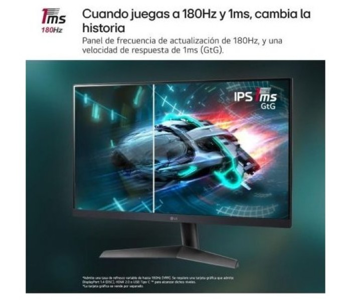 • Panel IPS de frecuencia de actualización de 180Hz y con 1ms (GtG) de velocidad de respuesta.