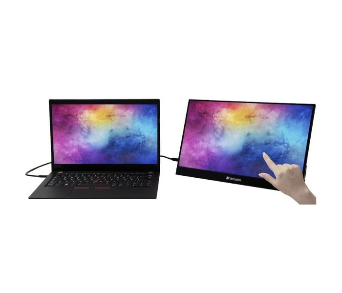 El monitor táctil portátil Verbatim te ofrece una dimensión adicional para el trabajo y el ocio. Puedes utilizarlo como una segunda pantalla para tu portátil cuando viajes o hagas presentaciones individuales, o para disponer de una gran pantalla adicional para tu teléfono, tableta o sistema de gaming portátil. Compacto y versátil, el monitor portátil te ofrece la máxima flexibilidad para aumentar la productividad y el entretenimiento durante tus viajes.