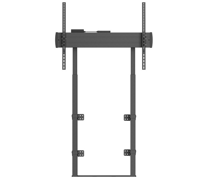 Este soporte cuenta con un sistema motorizado con control remoto por cable para ajustar la altura de la TV. Puede fijarse en la pared y en el suelo, proporcionando la máxima seguridad a la instalación. También es posible fijarlo únicamente en la pared, si se prefiere.