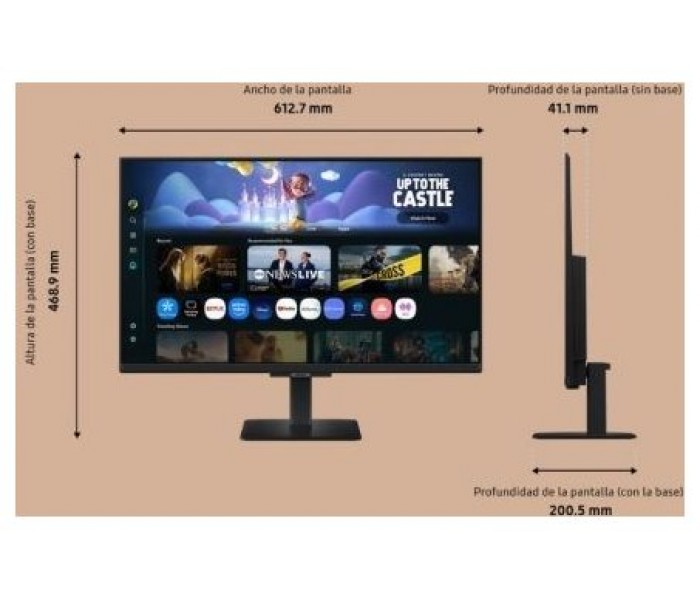- Dimensiones con peana: 612.7 x 468.9 x 200.5 mm