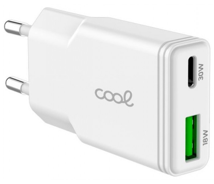 Cargador Red Universal Fast Charger (PD) Tipo-C / USB Dual COOL Plano (30W) Blanco