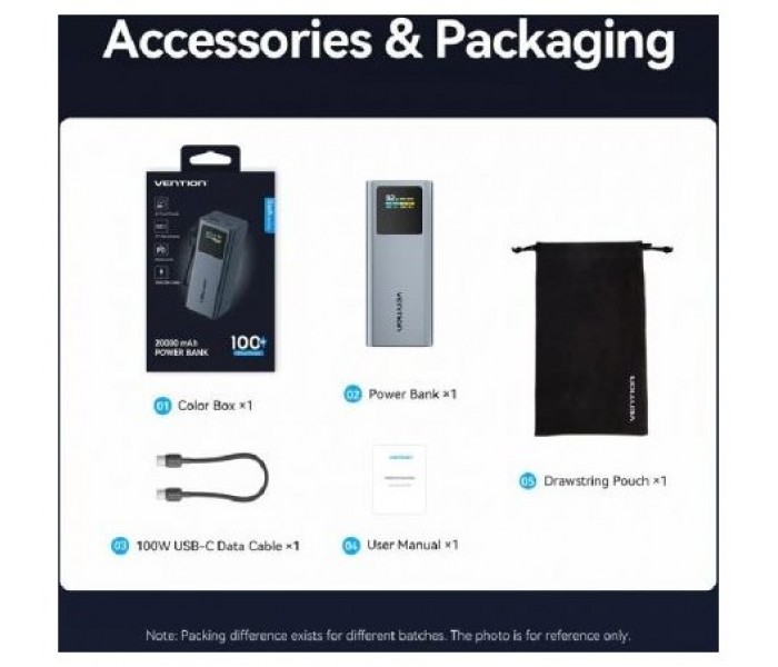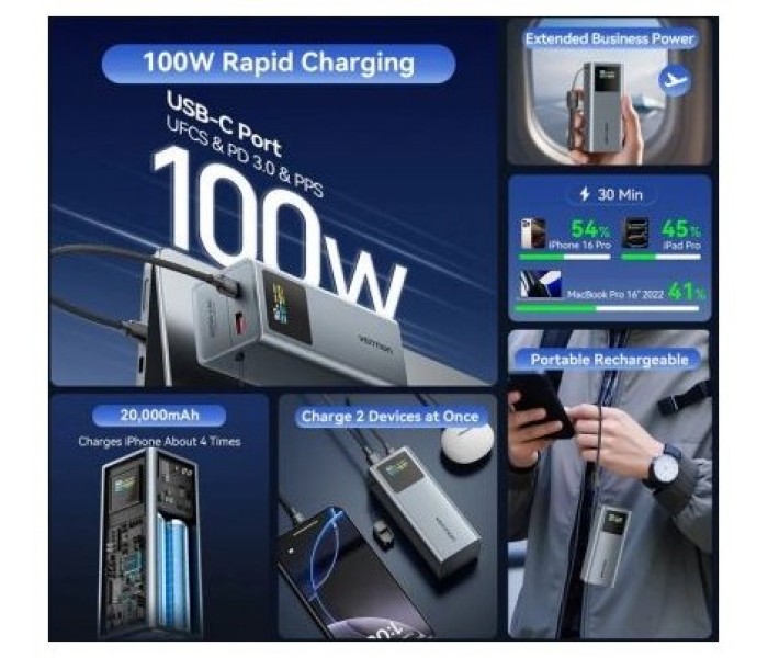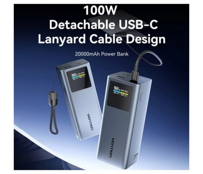 Powerbank 20000mAh Vention FKCH0/ 100W/ Gris/ Incluye Cable USB Tipo-C