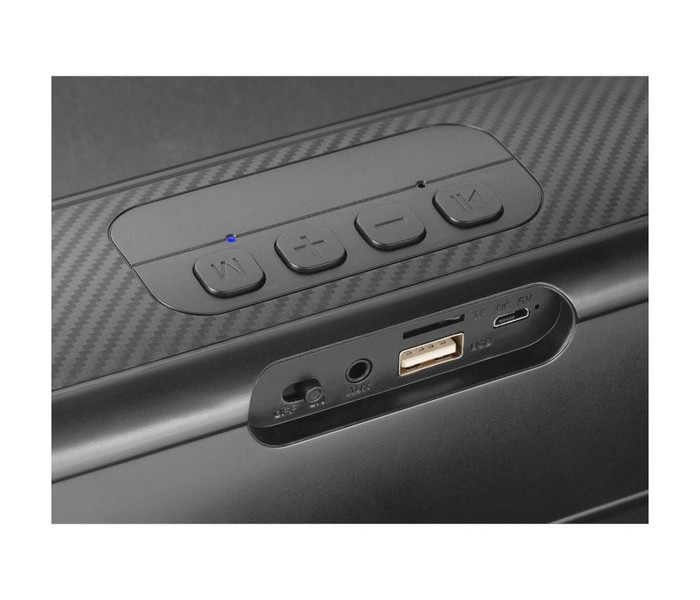 - Bluetooth 5.3 + AUX/MicroSD/USB y Radio FM
