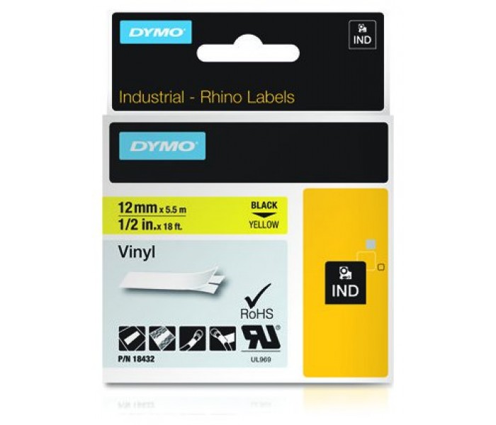 CINTA ROTULADORA RHINOPRO VINILO 12MMX5.5M NEGRO/AMARILLO DYMO 18432
