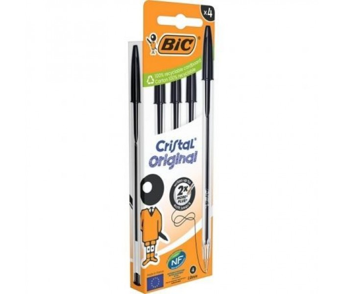 Estos bolígrafos Bic Cristal cuentan con un resistente mecanismo de carburo de tungsteno y tinta suave de secado instantáneo para un uso diario fiable. La punta mediana de 1,0 mm produce un trazo fino de 0,32 mm. El cuerpo hexagonal incluye un capuchón y un tapón negros a juego con el color de la tinta para facilitar su identificación. Este paquete contiene 4 bolígrafos negros en una caja de cartón reciclable.