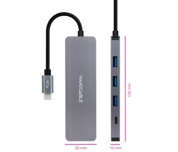Hub USB Tipo-C Nanocable 10.16.4409/ 3xUSB/ 1xUSB Tipo-C/ Gris