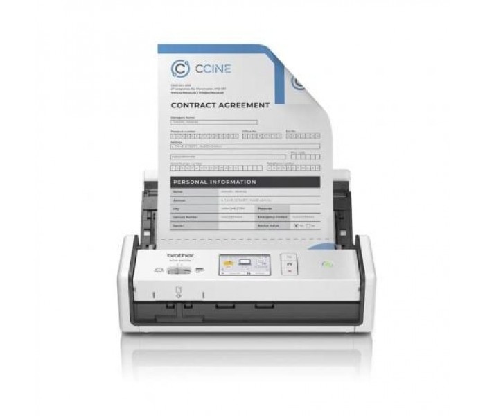 Escáner compacto, con alimentador automático de documentos, ranura para tarjetas/DNI y pantalla táctil color, para utilizar cómodamente tanto en la oficina como en el hogar.. . Especificaciones:. . General - Escáner. . Tipo de uso: Documental. Reloj de respaldo: Sí. Panel de control: LED, Keys. Pantalla: Pantalla color táctil. Tamaño de pantalla: 7.1cm (2.8"") LCD. . Conectividad. . Interfaz USB: USB Type-C *Requires USB Type-C connection with 15W power source (not included), USB 2.0 Host (Rear, up to 128GB). Wi-Fi Direct: 802.11g/n. Interfaz de red inalámbrica: 2.4GHz: IEEE 802.11b/g/n (Infrastructure Mode). . Dimensiones y pesos. . Con caja: W 369 X D 158 X H 200 mm. Peso: 3.46 kg. Sin caja: W 288 X D 101 X H 85 mm input tray closed. Peso: 1.42 kg. . Consumo de energía. . Funcionamiento: 12 vatios. Modo lista: 6.4 vatios. Hibernación: 1.5 vatios. Apagado: 0.1 vatios. . Medio Ambiente. . Humedad de funcionamiento: 20 to 80%. Temperatura de funcionamiento: 5 to 35 degrees celsius. Nivel de potencia sonora: 62dB. . Especificaciones de los soportes. . Tipos y gramajes: Plain Paper, Thin Paper, Thick Paper, Thicker Paper, Recycled Paper, Non carbon paper, Receipt, Business Card, Plastic Card. Tamaños: 51.8 - 128 gsm, Paper 0.08 ~ 0.14mm, Plastic card thickness embossed up to 1.24mm or without emboss 0.75-1.02mm. Tamaños de papel del ADF: Paper : width 51 - 215.9mm, height 70 - 355.6mm, Plastic card: width min/max 51-55mm, length min/max 80-90mm, Long Paper 5000mm (300dpi 1-sided single paper). . Red. . IPv4:. DHCP, APIPA (Auto IP), WINS/NetBIOS name resolution, DNS Resolver, mDNS, LLMNR responder, SMTP Client, FTP/SFTP Client, SMB Client(SMB1.0/2.0/2.1) (=CIFS Client), SNMPv1/v2c/v3, HTTP/HTTPS server, ICMP, Web Services(Scan), SNTP Client. IPv6:. RA, DNS Resolver, mDNS, LLMNR responder, SMTP Client, FTP Client, SMB Client(SMB1.0/2.0/2.1) (=CIFS Client), HTTP/HTTPS server, ICMPv6, Web Services(Scan), SNTP Client, SNMPv1/v2c/v3. Seguridad de red WiFi: SMTP-AUTH, SSL/TLS (HTTPS, SMTP), SNMP v3, SSH, 802.1x (EAP-FAST, PEAP, EAP-TLS, EAP-TTLS), WEP 64/128 bit, WPA-PSK (TKIP/AES), WPA2-PSK (TKIP/AES), WPA3-SAE (AES). Configuración WiFi soportada: Sí. . Sistemas operativos y software. . Compatible: Para ver la lista completa de sistemas operativos compatibles, consulta support.brother.com. Software incluido - Mac: Brother iPrint&Scan for Desktop, Kofax Power PDF Standard v3, Remote Setup. Software incluido - Windows: Brother iPrint&Scan for Desktop, Kofax PaperPort 14SE with OCR, Kofax Power PDF Standard v5, Remote Setup, Easy Setup. . Escaneado. . Escaneado a doble cara automático: Sí. Velocidad de escaneado: 30. ADF: 20. Escanea a: Scan to PC (Image), Network (SMB), Email Server, Workflow, FTP/SFTP, SharePoint (On Premise), Brother Webconnect, Brother Cloud Apps. Profundidad de color: 48/24 bit. Controladores: TWAIN, WIA, AirPrint Scan (Driverless) SANE. Escala de grises: 256 levels. Resolución de escaneado interpolada: 1200 x 1200 ppp. Resolución de escaneado desde ADF: 600 x 600 ppp. . Consumibles y accesorios. . Accesorios opcionales: Carrier Sheet CS-A3301, Pick-up Roller PUR-2001C, Separation Pad SP-2001C, Output Tray OT-1001C, Legacy Kit (LK-1001CEU, LK-1001CUK), USB Power Adapater (PA-AD-004EU, PA-AD-004UK)