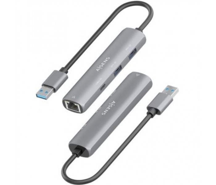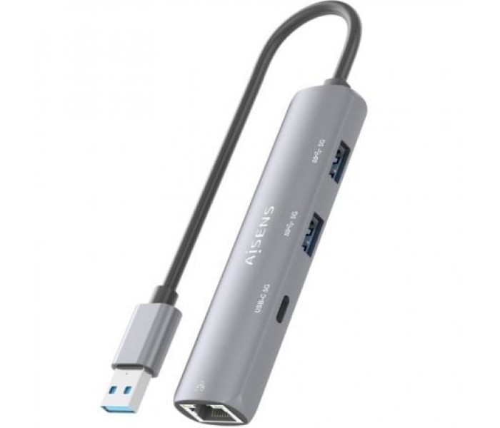 Hub USB Aisens ASUC-4P035-GR/ 1xUSB Tipo-C/ 2xUSB/ 1xRJ45/ Gris