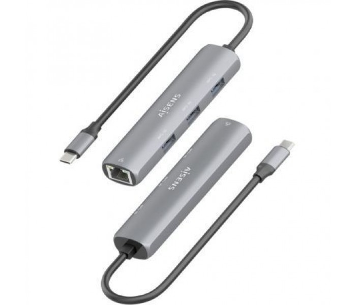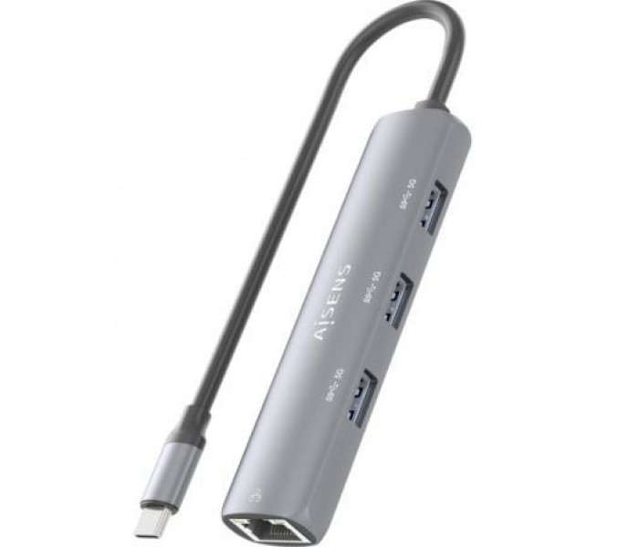 Hub USB Tipo-C Aisens ASUC-4P038-GR/ 3xUSB/ 1xRJ45/ Gris