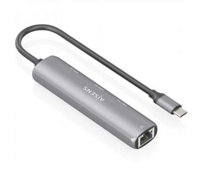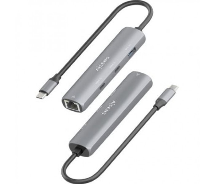 Hub USB Tipo-C Aisens ASUC-4P040-GR/ 2xUSB Tipo-C/ 1xUSB/ 1xRJ45/ Gris